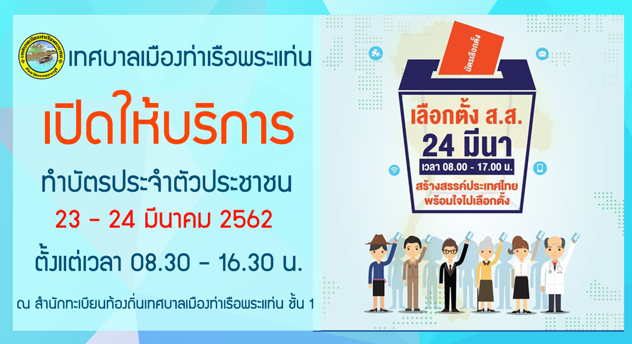 สำนักทะเบียนท้องถิ่นเทศบาลเมืองท่าเรือพระแท่นหยุดให้บริการ 2 วันทำการ...
