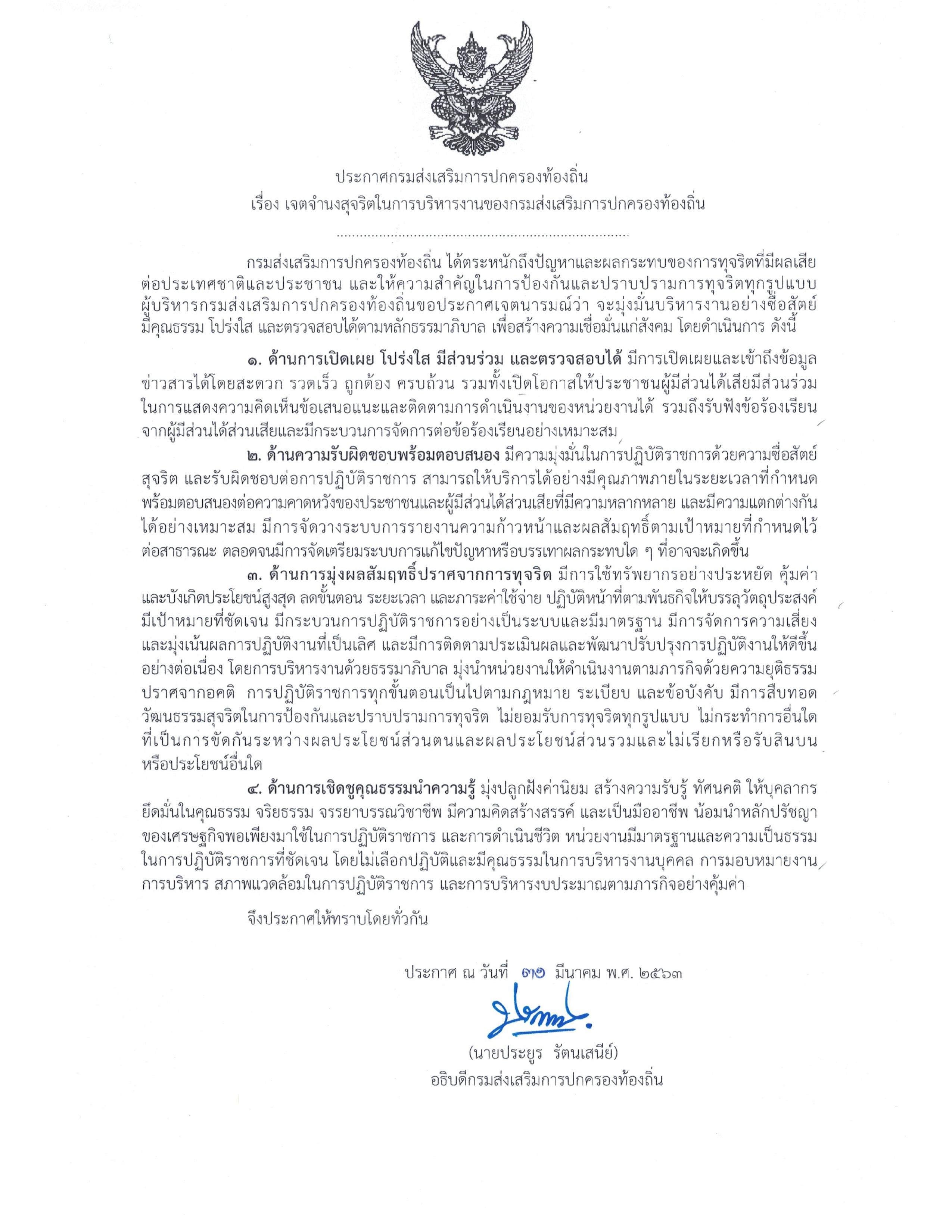 เจตจำนงสุจริตในการบริหารงานของกรมส่งเสริมการปกครองท้องถิ่น...