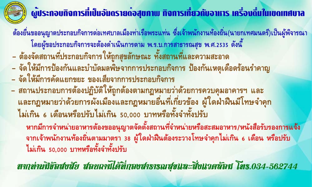 การขออนุญาตประกอบกิจการที่เป็นอันตรายต่อสุขภาพ กิจการเกี่ยวกับอาหาร เครื่องดื่มใ...